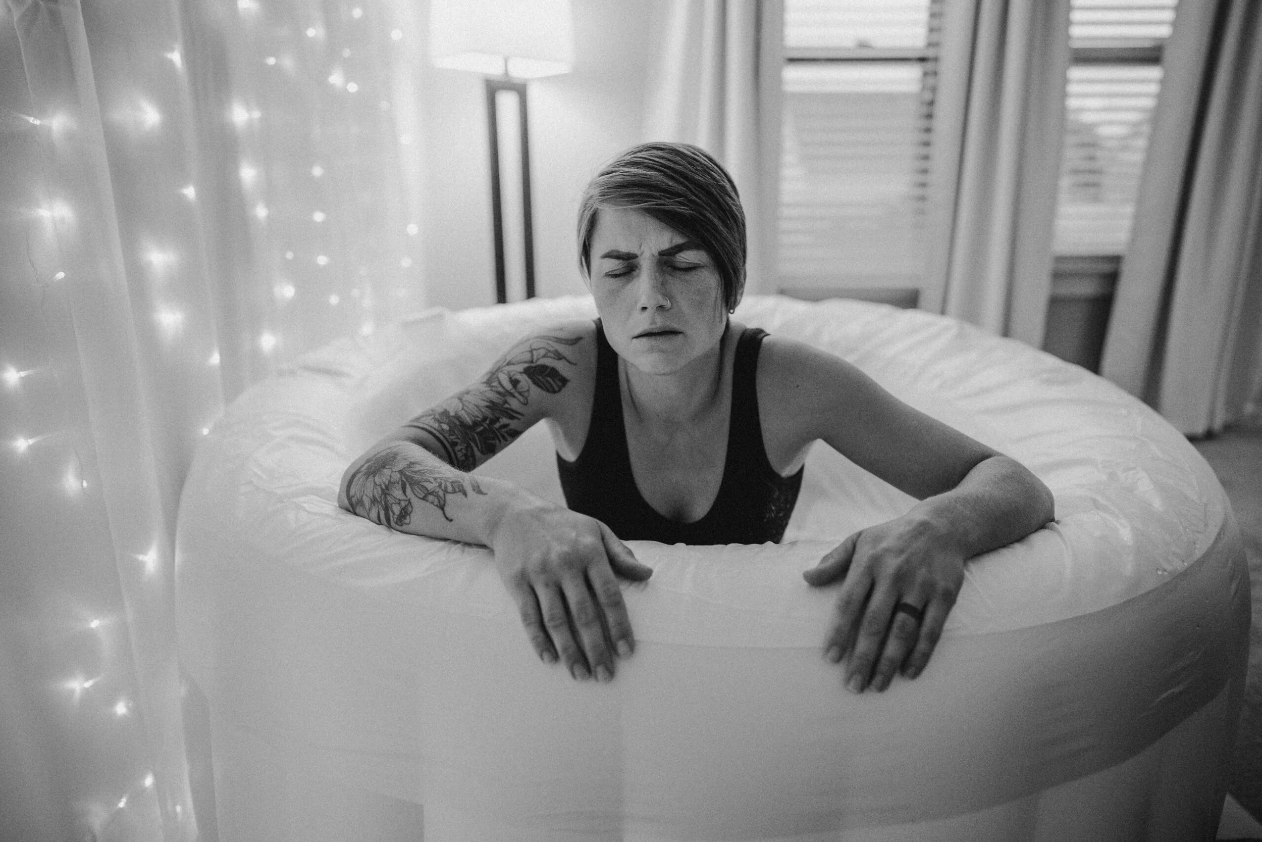 Momma in labor at home, using the dilation station (the toilet) to help her dilate so she can have a successful home birth.