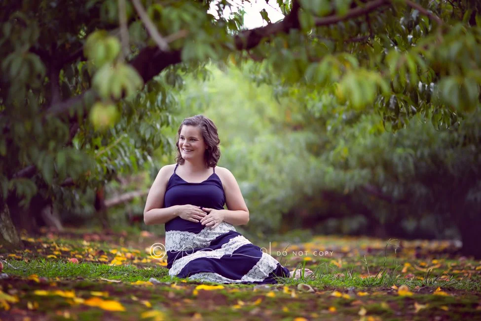 Shooting in a peach grove can now be crossed off my bucket list :) Such amazing backdrop for this lovely lady. And I'm so glad we braved those woods, because I adore the shot of her in the trees.